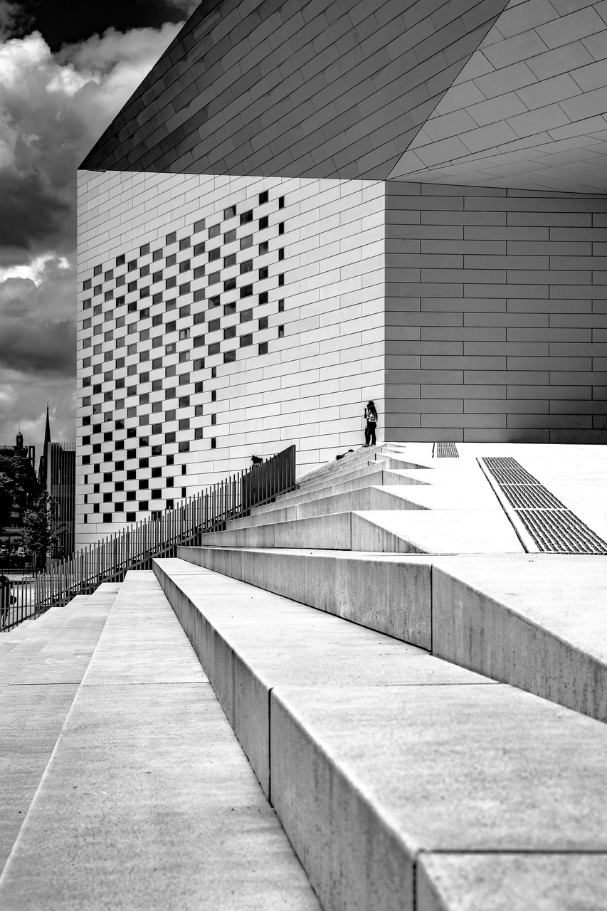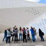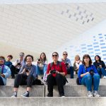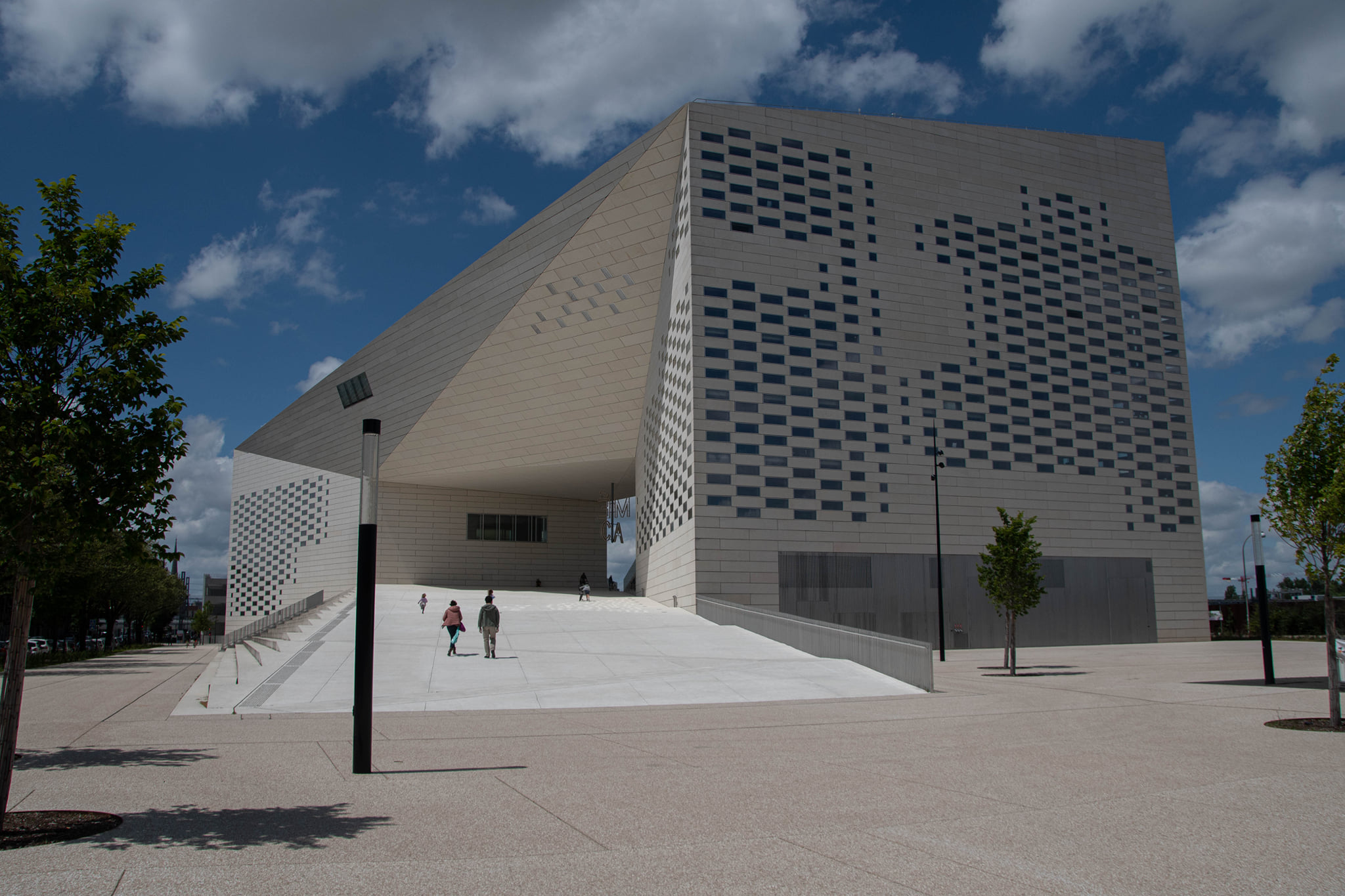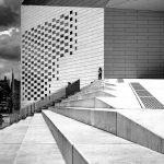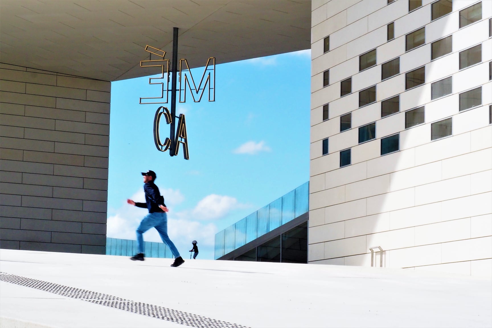 Ensuite, direction le quartier Euratlantique à pied, ce nouveau quartier d’affaires bordelais offre de nouveaux bâtiments contemporains très photogéniques. Et nous voilà de retour à la Méca en longeant le quartier de la Halle Bocca. Le quartier est un plus animé. On en profite pour refaire des photos avec des promeneurs à vélo, skate ou trotinnette. Univers photographique idéal pour de l’architecture avec un peu de vie pour montrer la grandeur du bâtiment. Et voilà notre belle boucle de 5 km terminée.